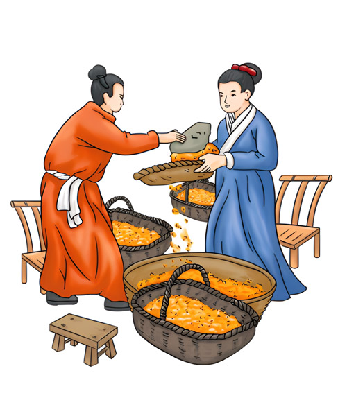 • 出鍋的芝麻要立即用風篩散熱,降低溫度,揚去煙塵、焦末和碎皮。否則,既會降低出油率,也會影響香油的氣味和色澤。